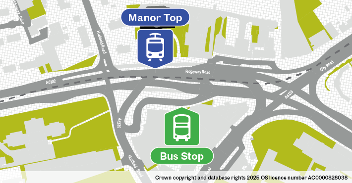• Spring Lane to Manor Top: 17 minutes (1,100 metres)