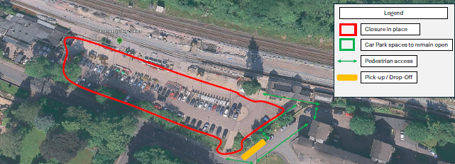 There will be a full closure of the car park to the public for around six weeks. This is to allow preparation work to facilitate the bridge and crane entering the site safely and then the reinstatement works to the car park. Alternative pedestrian access to the station will be provided and clearly signposted and access for local businesses will be maintained.