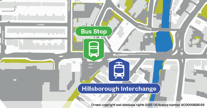- Hillsborough Interchange: The tram stop is at the Interchange, customer services are located on the corner of the bus station.